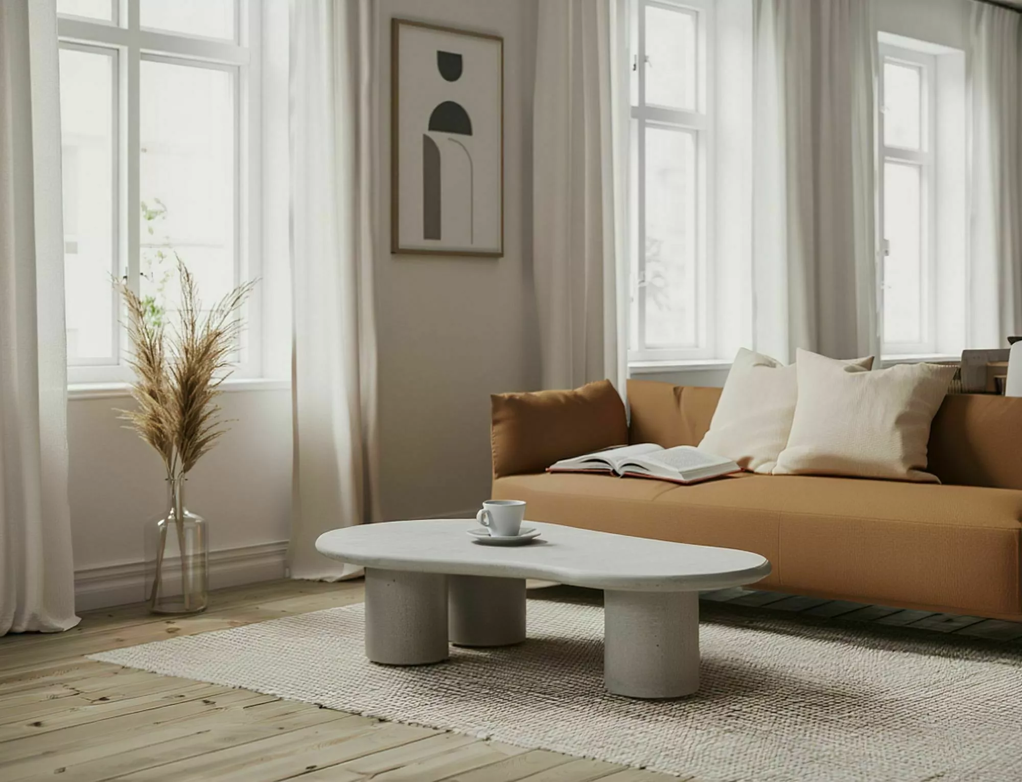 Ława, blat: mikrocement, stelaż: mikrocement, kolor: jasny szary / ecru.