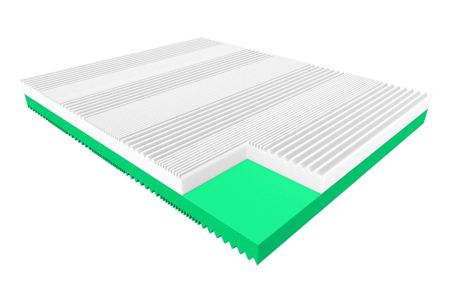 Poprzeczne wyprofilowanie obu pianek zapewnia delikatny masaż ciała i punktowe podparcie poszczególnych jego części, w oparciu o siedem różnych stref twardości. Zróżnicowana twardość pianek pozwala uzyskać bardziej uniwersalny materac, który łatwo dopasuje się do zmieniających się potrzeb Twojego ciała. Sprężysta struktura pianki wysokoelastycznej błyskawicznie reaguje na każdą zmianę ułożenia Twojego ciała i płynnie zmienia punkty podparcia, tak by utrzymywać kręgosłup zawsze w linii prostej, czyli najkorzystniejszym dla niego ułożeniu. Z kolei pianka hybrydowa pozwala na uzyskanie mocniejszego podparcia ciała. Stanowi także doskonałą bazę dla warstwy elastycznej, wspomagając jej punktowe dostosowanie i wyrównując jej twardość.