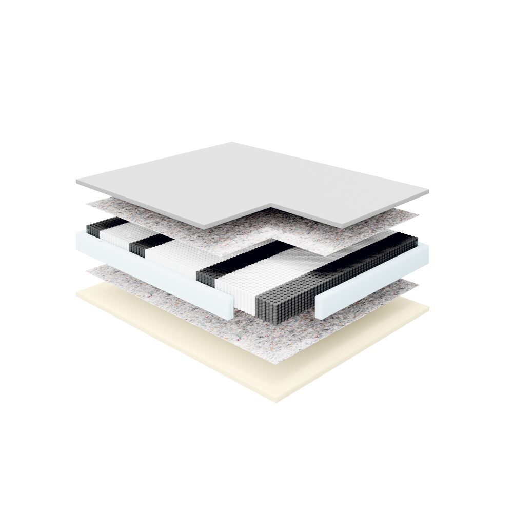 Rdzeń materaca zapewnia stabilne i precyzyjne podparcie – każda sprężyna pracuje niezależnie, a system 7 stref twardości dba o równomierne rozłożenie ciężaru i zdrową pozycję kręgosłupa. Dzięki temu Niobe sprawdzi się zarówno dla osób śpiących samotnie, jak i dla par, minimalizując przenoszenie ruchów.